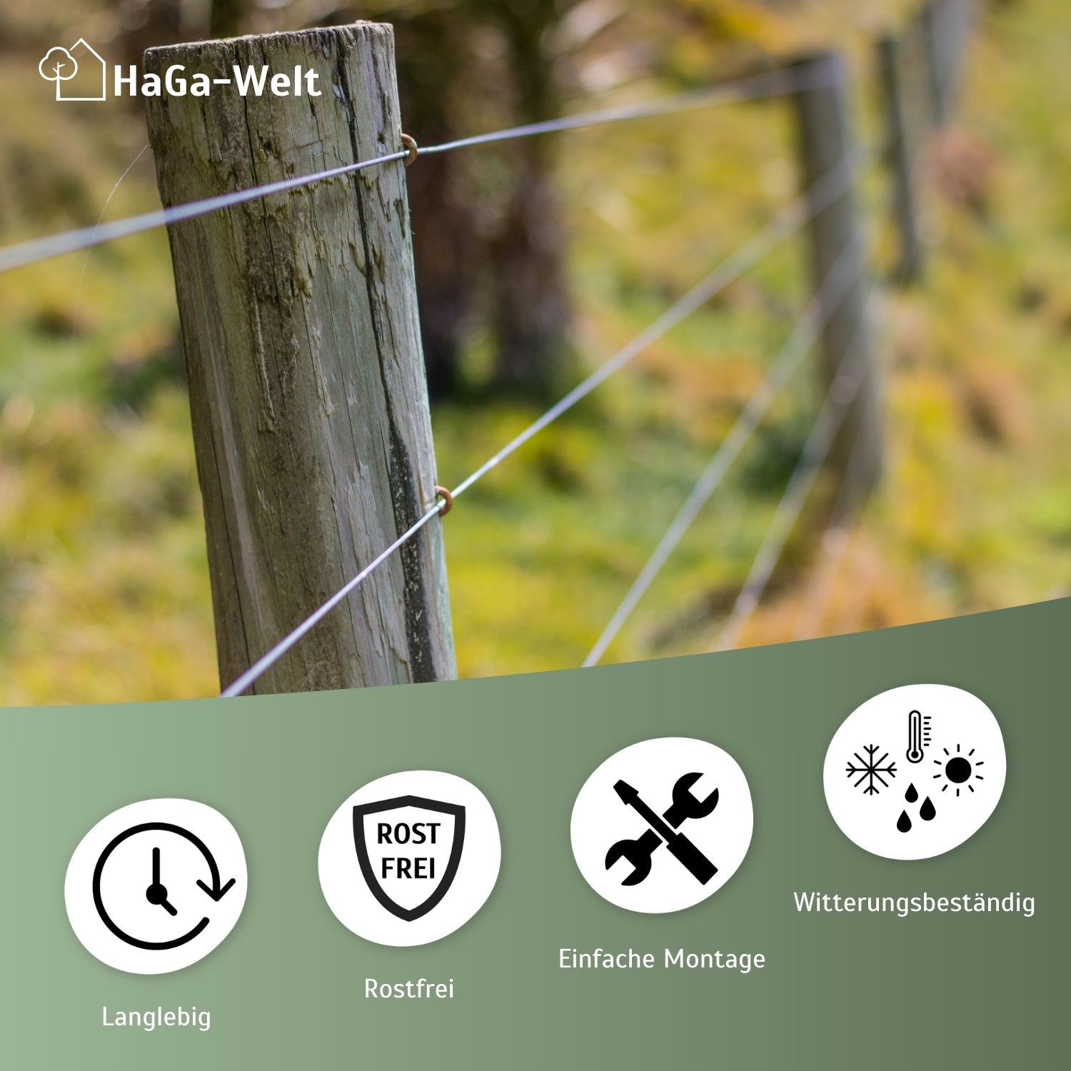 Bestellen Sie jetzt und machen Sie Ihren Zaun wetterfest, langlebig und formstabil – mit dem richtigen Spanndraht.
