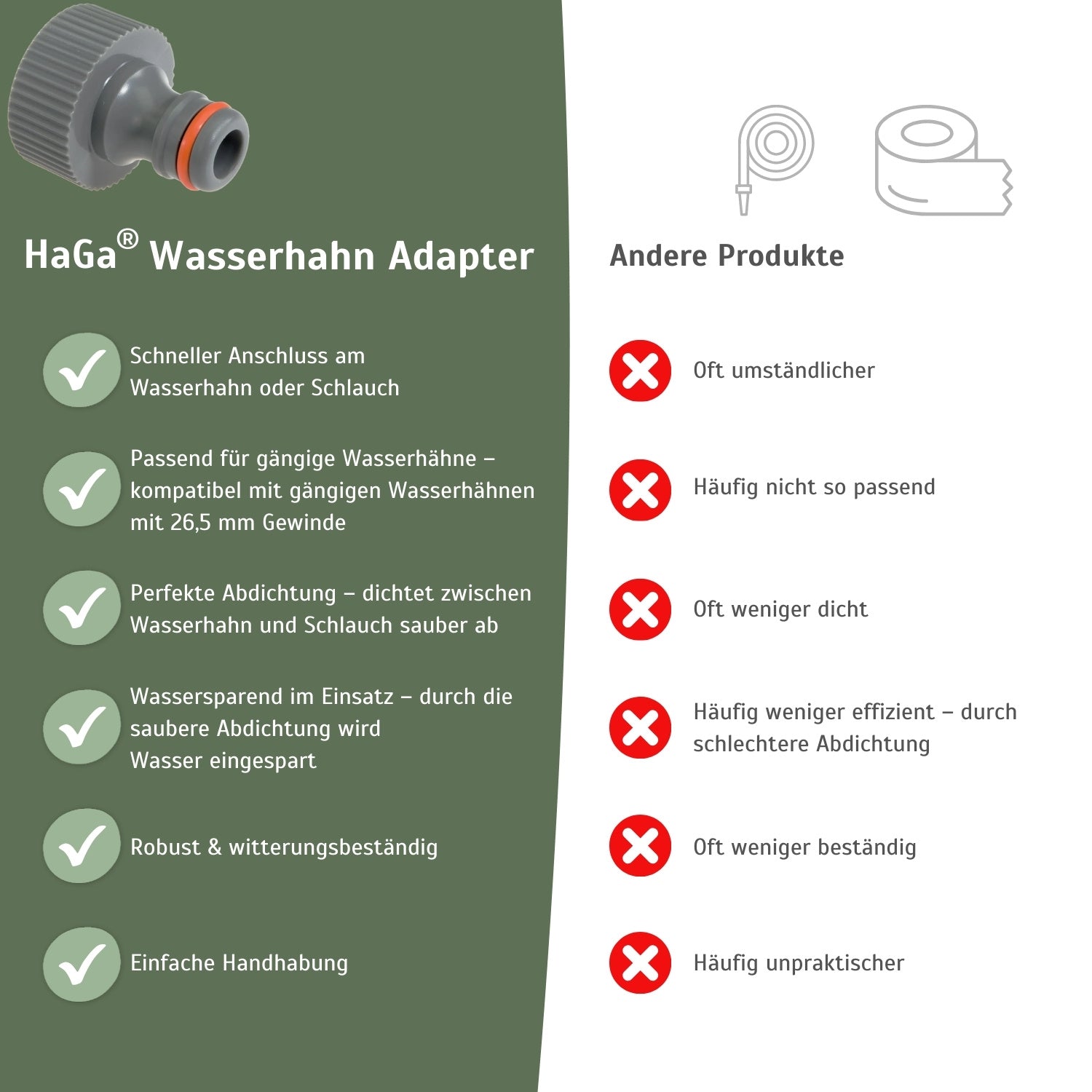 Gartenschlauch-Adapter Wasserhahn - perfekter Schlauchverbinder zwischen Gartenschlauch und Wasseranschluss