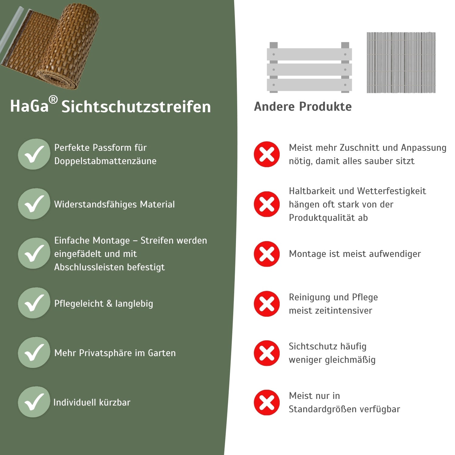 • Perfekte Passform für Doppelstabmattenzäune: Die Sichtschutzstreifen passen perfekt für Doppelstabmattenzäune und lassen sich einfach einfügen.