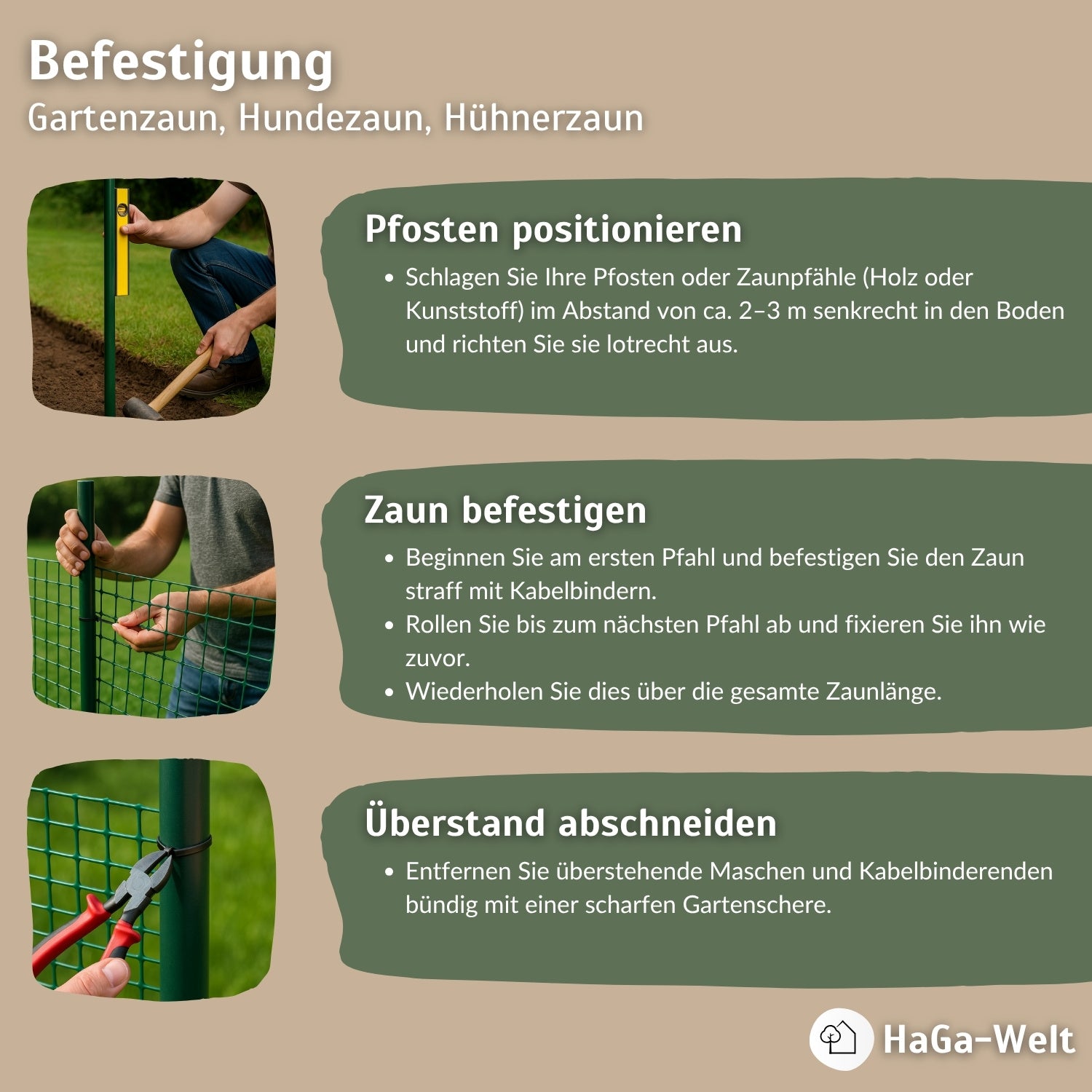 Kein Profi? Kein Problem! Der leichte Kunststoffzaun lässt sich mühelos je nach Bedarf zuschneiden und mit wenig Hilfsmitteln aufstellen. Ob als frei stehender Gartenzaun oder Ergänzung eines bestehenden Zauns, als Tiergehege, Kompostgitter, Laubschutz für Teiche oder mobiler Hundezaun, setzen Sie Ihre Zaun-Projekte schnell und einfach um.