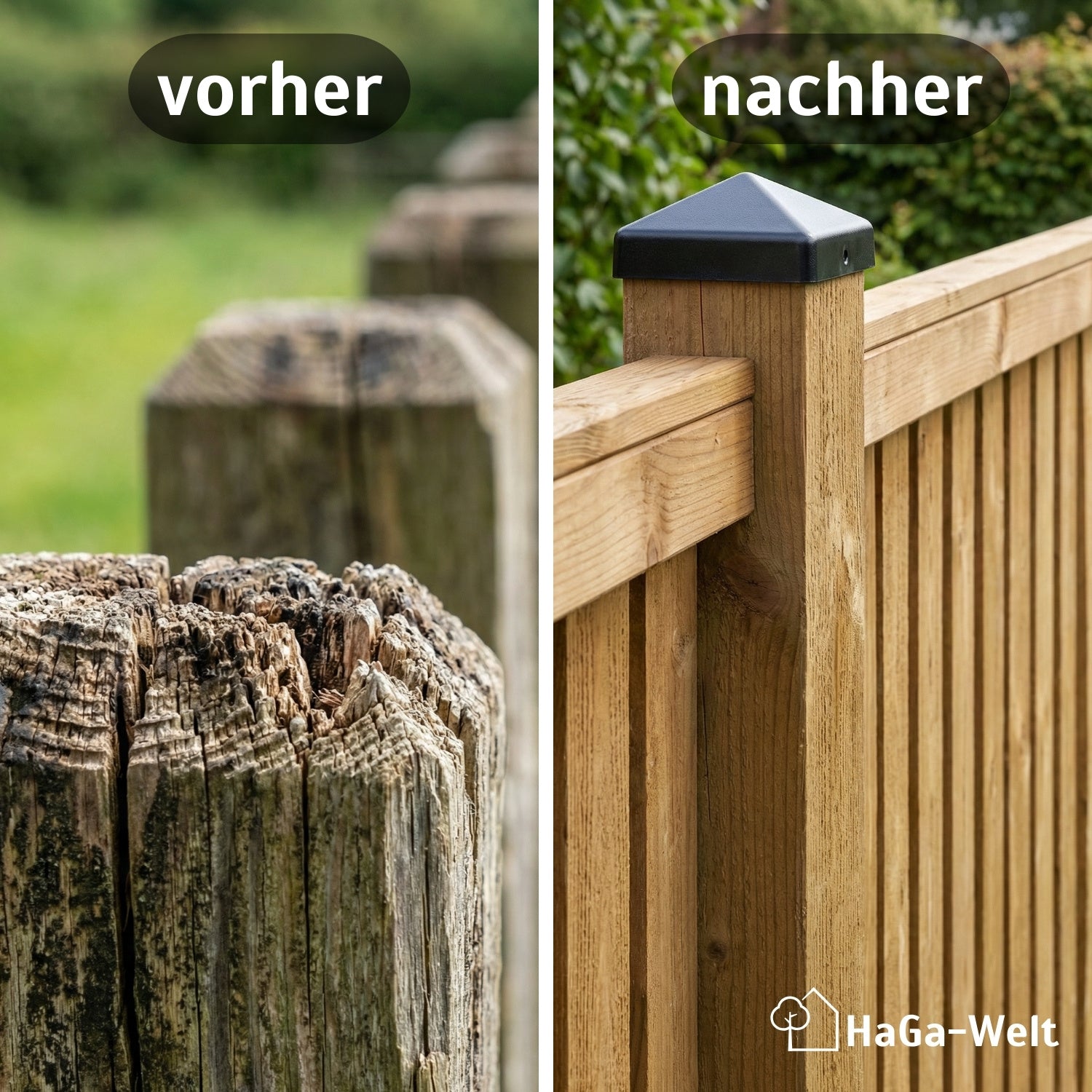 In addition to their functional benefits, post caps give your fence a high-quality, uniform look . The clean lines and neat edge coverage ensure a professional overall appearance – whether you're building a new fence or upgrading an existing one.